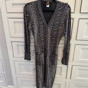 Elegant cardigan with a snake pattern. Features a sleek design. Ideal for stylish layering.