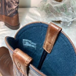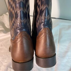Ariat Western Cowboy Boots Brown & Navy Blue Square Toe Leather – US 6