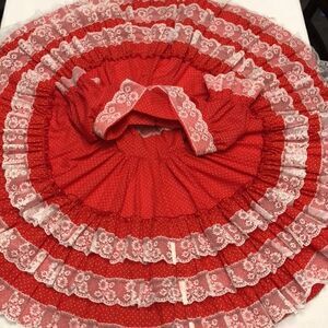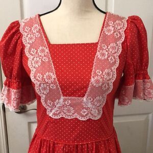 Made especially for you by Marilyn Marshall. Lace ruffles dot dress