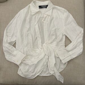 🤍 NWT Jacquemus “La Chemise Bahia” White Draped Tie Shirt – Size 40 FR (US 8) 🤍