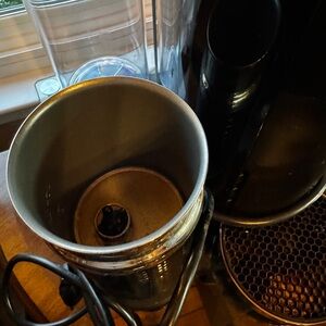 Also comes with the stand and drawer for pods. Elegant Nespresso machine in glossy black. Includes a convenient milk frother. Ideal for coffee enthusiasts.