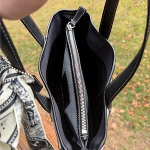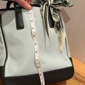 Chic and versatile, this black and blue tote bag is perfect for any occasion. Its stylish design and spacious interior make it a must-have accessory. Has original Hangtag. Basic wear. COMES WITH TWILLY!