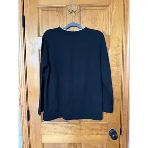 White Stag Women Black Long Sleeve Snowman Christmas Tree Embroidered Top L