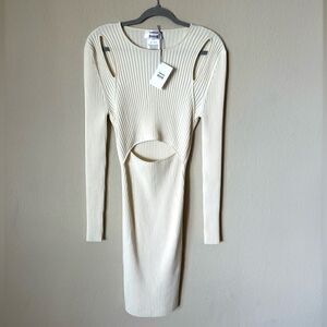 NWT Simkhai X Wolford Wool Mini Cream White Dress Knit Contoured Rib Size L