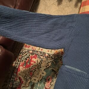 Stay stylish and comfortable with this blue men's sweater featuring distinctive elbow patches. Perfect for casual outings or a cozy day at home.