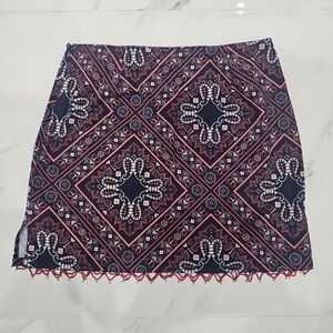Boston Proper Navy, Red And White Geometric Mini Skirt With Beaded Hem Size 12