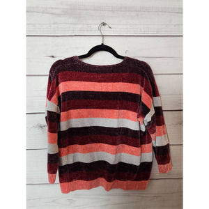 Express Womens Pullover Sweater Multicolor Stripe 3/4 Sleeve V Neck M