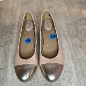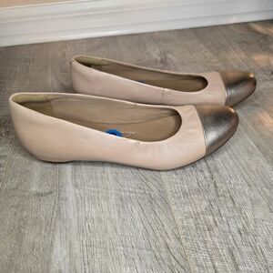 Step out in style with these elegant women's ballet flats. Featuring a chic blush pink body with a striking rose gold metallic toe, these shoes offer both comfort and sophistication. Perfect for any occasion.