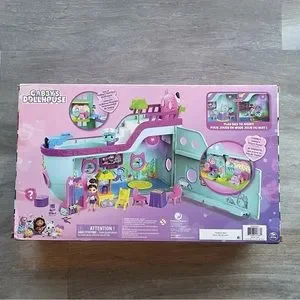 Brand new in box Gabby's Dollhouse, Gabby Cat Friend Ship, Cruise Ship Toy with 2 Toy Figures, Surprise Toys & Dollhouse Accessories, Kids Toys. Features Includes: 1 Cruise Ship, 1 Gabby Figure + extra outfit, 1 MerCat Figure, 1 Dollhouse Delivery, 18 Pieces.