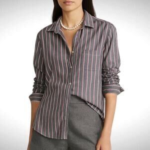 Grayson Women's S The Hero Long Sleeve Cotton Button Up Blue Pink Stripe Western