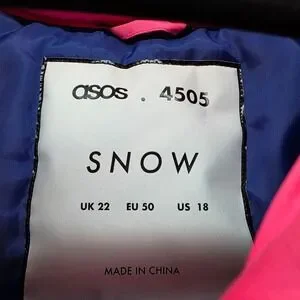 ASOS 4505 Snow Full Ski Suit Jumpsuit Pink Blue Colorblock Womens Size US 18