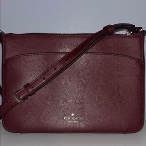 Elegant crossbody bag with gold-tone hardware. Features a sleek design and adjustable strap.