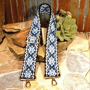Handbag Strap Geometric Blue and Black Adjustable Guitar Bag Strap NWOT