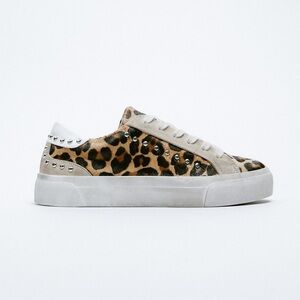 NWT. Zara Animal Print Sneakers/Leather Trainers with an animal print and studs, aged effect on the upper and speckled-effect sole that may vary from the photo, lace-up closure. Size 7,5. Ref. 5309/810. SH.19
