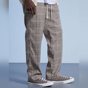 A modern silhouette with cool and casual styling has arrived from PacSun with the Brown Plaid Menswear Trousers. These classic plaid printed pants have a semi-stretch fabrication with an adjustable drawstring waistband and a straight-leg fit.