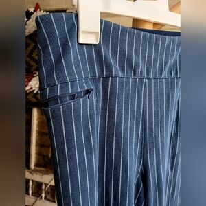 Stylish blue pants with white stripes. Perfect for casual or formal wear. Zip pockets in the front and cool upper hip pockets in the back.