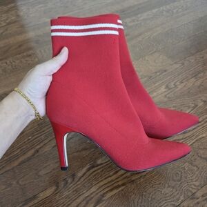 Leith Finn Sock Bootie In Ruby Red Size 8