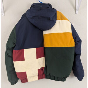 Vintage Tommy Hilfiger sz L Puffer Coat Jacket color block hoodie zips HU