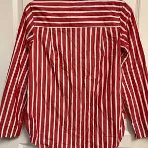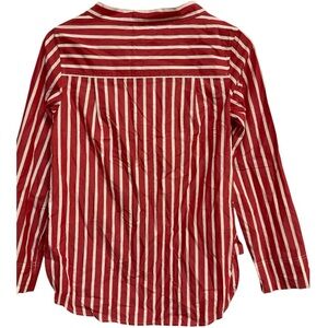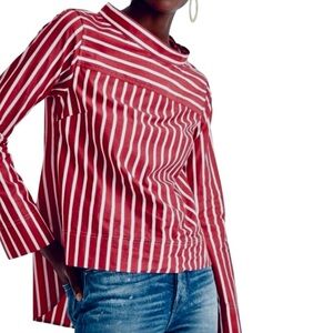Brand new J.Crew striped blouse in red and white. Features button details on shoulder, high-low hem, and lightweight cotton feel. Perfect for casual chic looks or office wear.