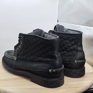 The Mens Size 8.5 Cole Haan Pinch Maine Classic moc toe boots are a stylish and versatile choice for casual occasions. Featuring a round toe shape, lace-up closure, and ankle shaft style, these black leather boots offer arch support and cushioning for added comfort. With a classic theme and solid pattern, these boots are perfect for the winter, fall, and spring seasons. The Cole Haan brand and quality construction make these boots a timeless addition to any man's wardrobe.