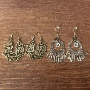 Gold-tone Dangle Earrings - 2 Pairs