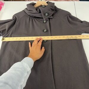 Lilla P Sweatshirt Womens Large Brown Cotton Cozy Knit Funnel Neck Button Front.