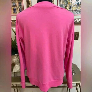 Rib knit hem&cuffs , long sleeve, boat neck, logo on side, hot pink, measurements pit to pit 20” length 22” , pre- owned in good condition.