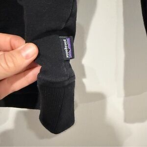 Classic black hoodie with iconic Patagonia logo. Comfortable and stylish for everyday wear.