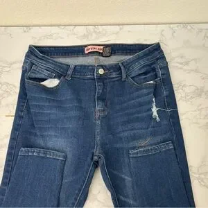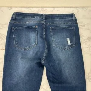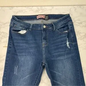 Crystal Rock Jeans Womens 14 High Rise Dark Blue Denim Distressed Skinny Leg