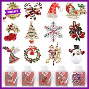 12-Piece Vintage Christmas Brooch Set with Gift Packaging