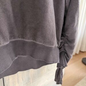 Three spots that look like water drop stains (see picture), they do blend in with sweatshirt