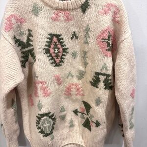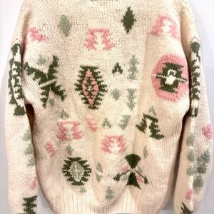 Vintage 80s 90s Outback Red Cream and Green Patterned crewneck Sweater large