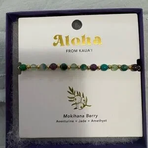 Aloha bracelet with multicolor beads. Features aventurine, jade, and amethyst.