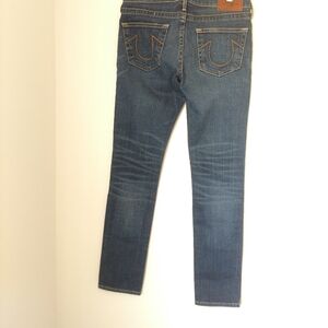 Super cute True Religion Rori World Tour relaxed straight distressed patched jeans, size 25. they have stretch, straight leg, mid-rise. They are in unusually excellent pre-owned condition. If you like to wear them cuffed the inside is red. Approximate measurements inseam 31 in, waist 15.5 in measured straight across. Please see photos happy to answer questions. Very responsive seller.