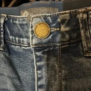 Tummy control technology. Stretchy waist. Acid washed . I would say it’s a true 32 waist. Skinny jean. Lots of stretch.