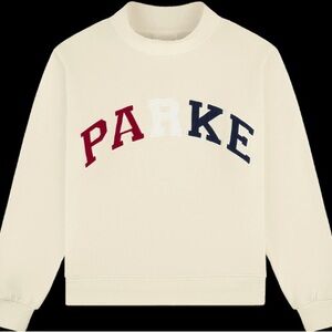 Stay cozy and stylish with this cream sweatshirt featuring vibrant red, white, and blue letters. Perfect for everyday wear.