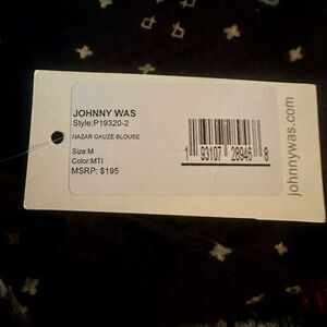 JOHNNY WAS Nazar Black Cotton Gauze Tunic with Multicolor Accents, M