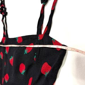 Reformation Mandy Mini Dress Black Red Strawberry Print Size 10 Feminine Novelty