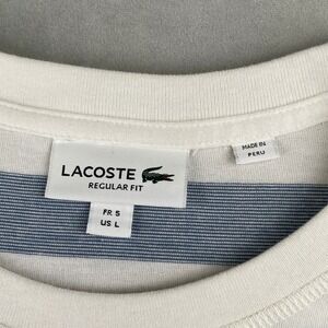 Lacoste Regular Fit Striped Crew Neck T Shirt Mens 5/L White Blue Casual Croc