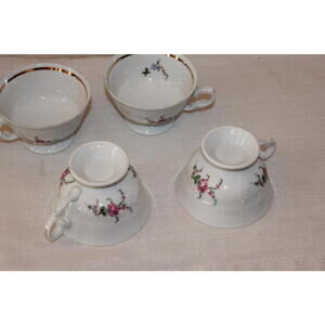 Beautiful vintage Royal Kent tea cups featuring delicate floral motifs and elegant gold trim. This charming set reflects classic European craftsmanship and timeless design—perfect for afternoon tea, display, or completing a vintage china collection.