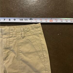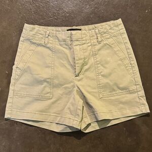 These are women's khaki shorts from Banana Republic, featuring a classic design with front pockets. They are suitable for casual wear and offer a comfortable fit.