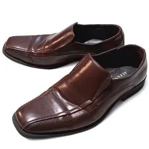Keywords: Alfani shoes, mens loafers, brown dress shoes, square toe, slip on, business casual, formal shoes, mens footwear, office wear, smart shoes, classic style, polished leather