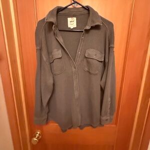 An oversized fit meets oversized, statement pockets & a longer length. Plus, new feels too: all this in a pretty waffle. Over or under, layer on the love.