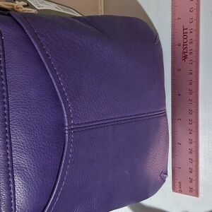 American Leather Co. crossbody in the color grape. 8.5 inches high, 7 inches wide. Magnetic front flap closure. Single exterior slip pocket. Single zip pocket and slip pocket interior. Reasonable offers welcome. Ships next business day.