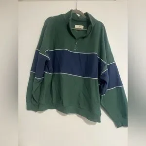 Thread & Supply Forest Green Pullover Quarter Zip Vintage 90’s Look Sweater Blue