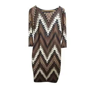 NWT Sami & Jo Long Sleeve Midi Dress Geometric Brown