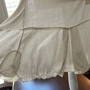 Add a touch of whimsical charm to your wardrobe with this boho-inspired white Creme dress in size Large. Featuring delicate 3D floral appliqués at the neckline, a unique balloon hem, and a side button pocket detail, this sleeveless dress blends comfort with artisan style. The lightweight, semi-sheer fabric makes it perfect for layering or warm-weather wear. Great for casual outings, beach days, or relaxed summer events.