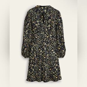 Boden Preppy Tie Neck Mini Shirt Dress Black Size 10