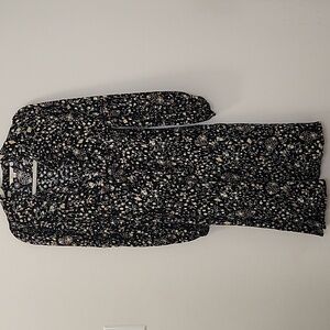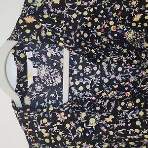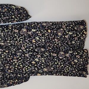 Elegant black dress with a vibrant floral pattern, perfect for any occasion.