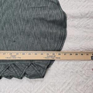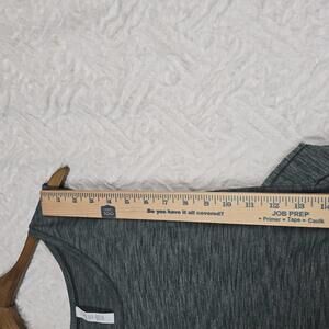 This is a size 12 Lululemon Var-City Muscle Tank. This women's athletic tank top is known for its grey heathered fabric and distinctive open, criss-cross, or ruched side details, which provide ventilation and a stylish look.
